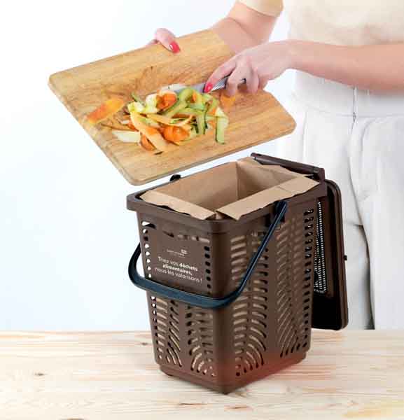 - Triez vos déchets alimentaires à l’aide du bioseau et des sacs en kraft reçu à votre domicile : restes de repas, fruits, légumes, petits déchets verts, laitages, fromages, pains, pâtisseries, céréales, marc de café, sachets de thé, essuie-tout et serviettes en papier blanc.